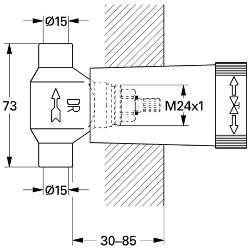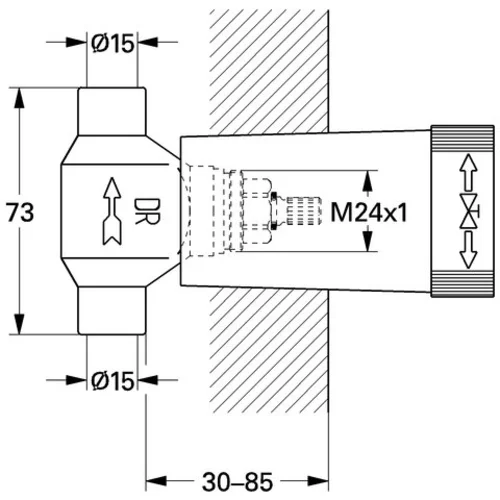Grohe flush-mounted valve, lower part, solder connection D 15mm