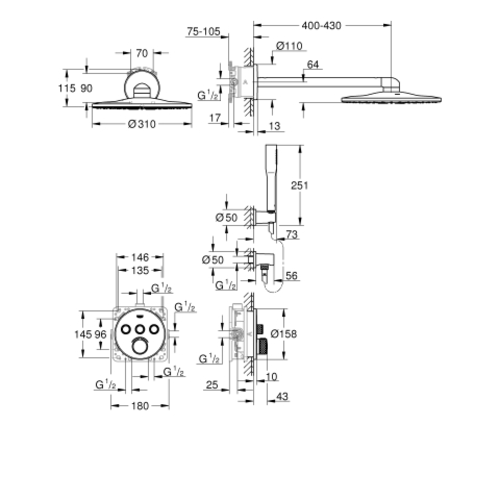 - Rainshower 310 SmartActive overhead shower set (26 475) and