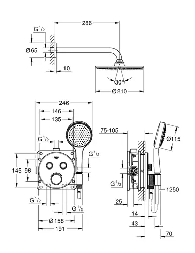 - Grohtherm SmartControl ready to use assembly set (29 120)
