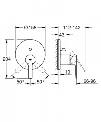 - Wall rosette with GROHE FastFixation with concealed rosette and shaft seal, concealed fixing