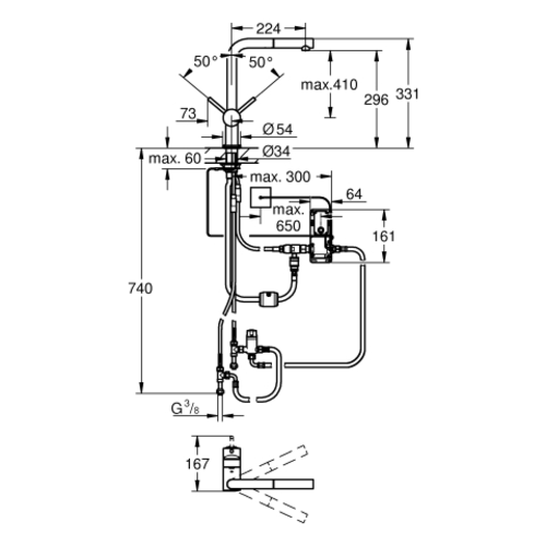 - PULL-OUT MOUSSEUR: Extends the radius of action of the fittings