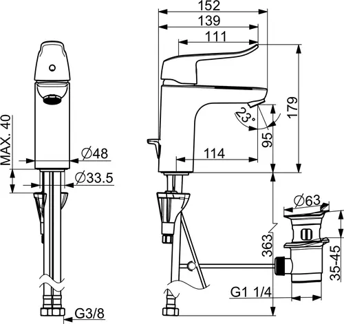 - ø 4.0 control cartridge with ceramic sealing discs for water quantity and temperature adjustment
