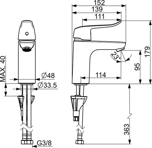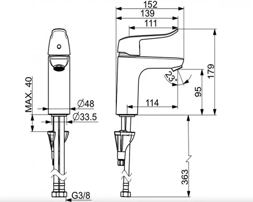 - ø 4.0 control cartridge with ceramic sealing discs for water quantity and temperature adjustment