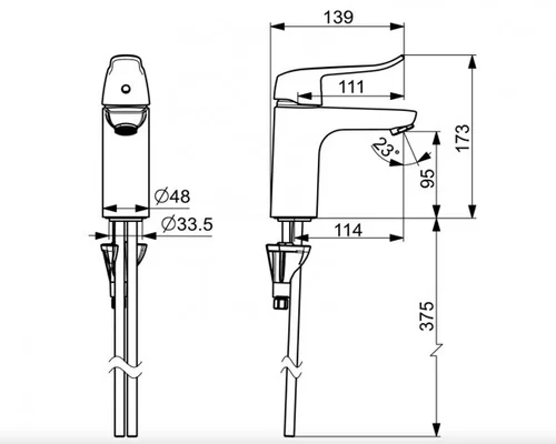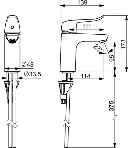 - Material: Faucet body made of brass resistant to dezincification (DZR )