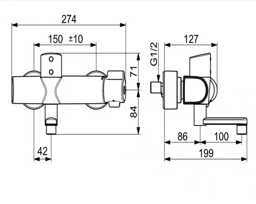 - Scald protection by temperature end stop 38°C (36°-44°).