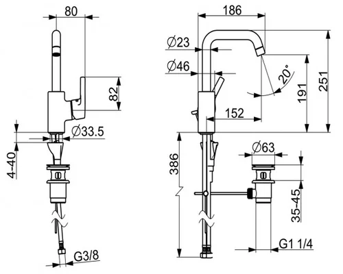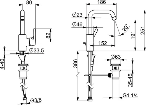HANSA HANSAPALENO basin mixer, 152 mm projection, with pull rod, chrome