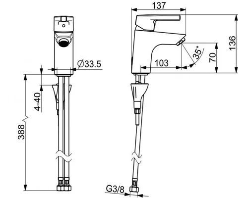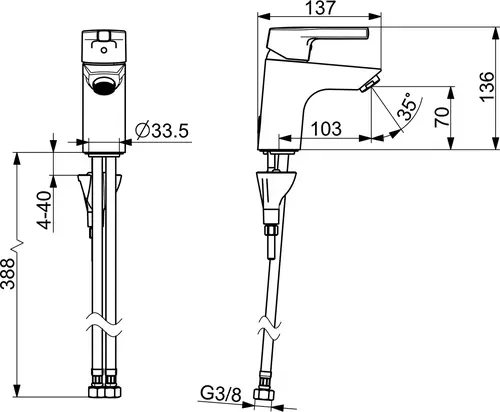 - ø 3.5 classic control cartridge with ceramic sealing discs for water quantity and temperature adjustment