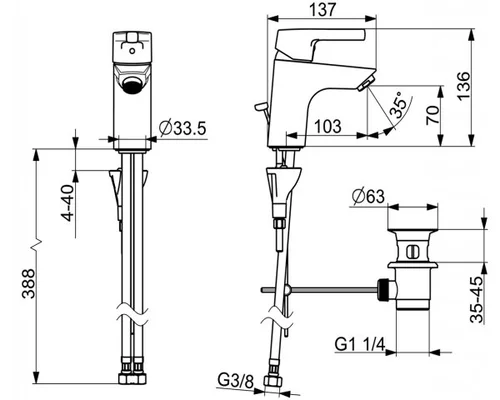 - ø 3.5 classic control cartridge with ceramic sealing discs for water quantity and temperature adjustment