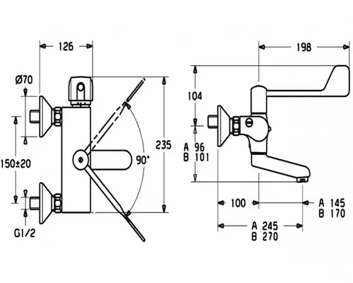 - Handle type: Operating handle long, temperature adjusting handle, flow adjusting handle.