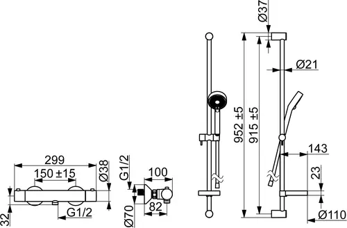 HANSA HANSAUNITA shower fitting, shower holding bar 952 mm, 3 jets, chrome