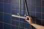 - Hand shower holder can be rotated on the bar for left or right-hand operation