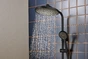 - Consists of: Overhead shower, hand shower, shower thermostat, shower rail, hand shower holder, shower hoses