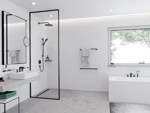 - the clear design radiates value and harmonises well with modern fittings such as hansgrohe Metropol.