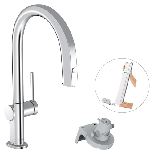 hansgrohe Aqittura M91 kitchen mixer, Filtersystem 210, pull up to 76cm, 1jet