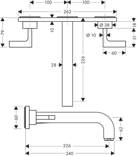 hansgrohe AXOR Citterio 3-hole basin mixer flush-mounted, spout 222mm, lever handles, plate for wall mounting