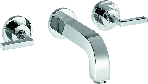 hansgrohe AXOR Citterio 3-hole basin mixer flush-mounted, spout 222mm, lever handles, rosettes for wall mounting