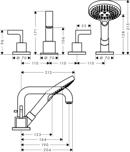 hansgrohe AXOR Citterio 4-hole bath rim fitting with lever handles