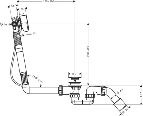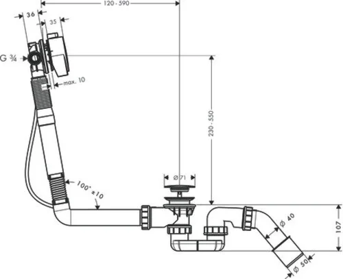 hansgrohe AXOR Flexaplus S complete set, drain and overflow set, for special tubs
