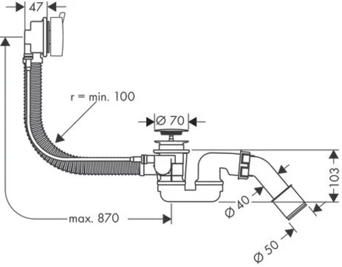 hansgrohe AXOR Flexaplus S complete set, drain and overflow set, for special tubs