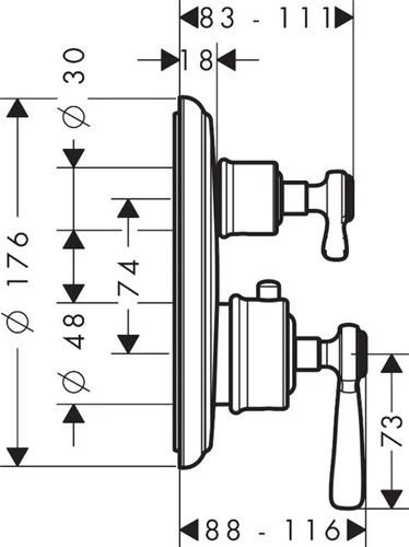 hansgrohe AXOR Montreux thermostat flush-mounted, stop and changeover valve, lever handle, 2 consumers