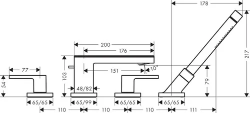 - consists of: 4-hole bath rim fitting, plate, rod hand shower, Secuflex hose fitting, shower holder