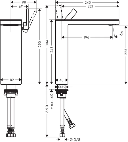 - Lateral handle position: at top of outlet (generally suitable for washerüs)