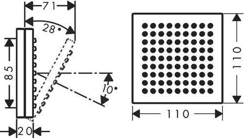 - Shower head size: 110 x 110 mm