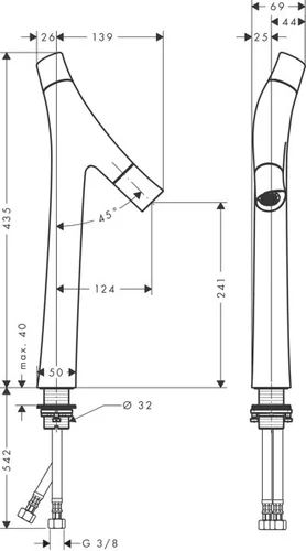 hansgrohe AXOR Starck Organic 2-handle washbasin mixer 240, without drawbar, for wash basins