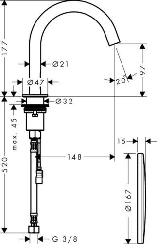 - Function may be restricted in washbasins with raised or very wide edge (greater than 75 mm), Functional restriction due to too large a distance