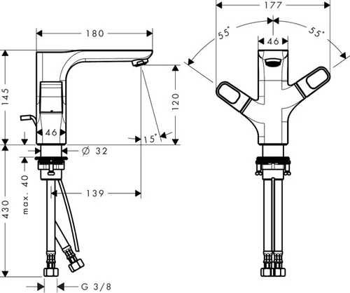 hansgrohe AXOR Urquiola 2-handle basin mixer 120 with drain set
