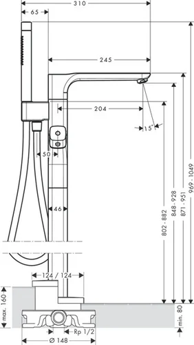 hansgrohe AXOR Urquiola Thermostat Bath mixer DN15 floor standing