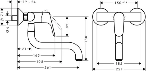 hansgrohe Focus M41 single lever kitchen mixer, wall mounting Lowspout, 1jet, chrome