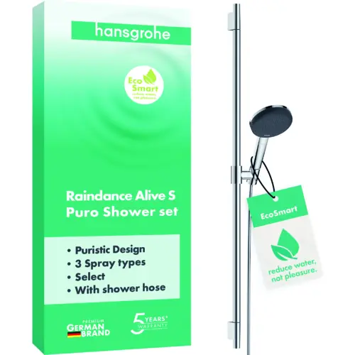 hansgrohe Raindance Alive Select S shower set 125 3jet EcoSmart with shower rail Unica S PURO 90 cm