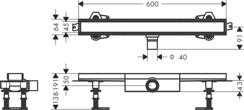 hansgrohe RainDrain Compact complete set shower channel 600, tileable, for flat installation