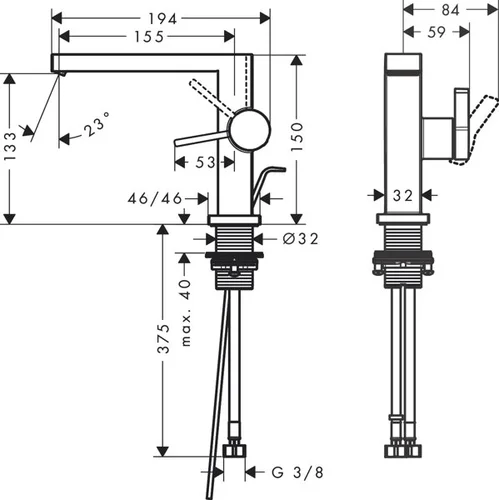 hansgrohe Tecturis E Fine single-lever basin mixer 110, projection 155mm, drain set, CoolStart, EcoSmart+