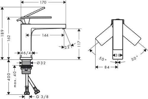 hansgrohe Tecturis E single-lever basin mixer 110, projection 144mm, without drain set, EcoSmart+