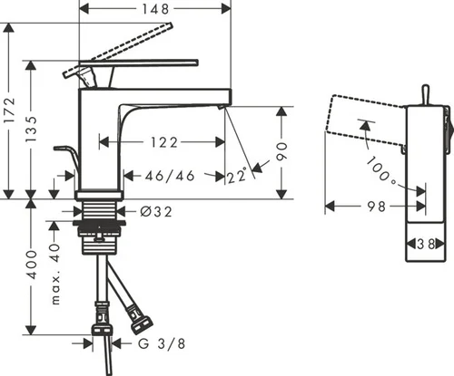 hansgrohe Tecturis E single-lever basin mixer 80, 122 mm projection, with drain set, CoolStart, EcoSmart+