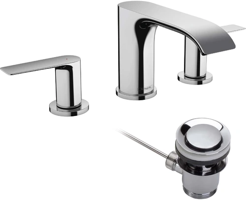 hansgrohe Vivenis, 3-hole basin mixer 90 with drain set, projection 150 mm