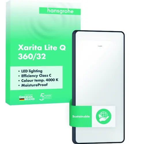 hansgrohe Xarita Lite Q mirror, horizontal LED lighting, 360x30x700mm, wall switch