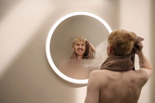 - via hand movement under the mirror