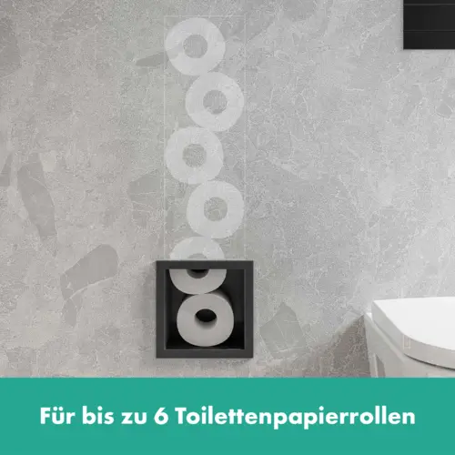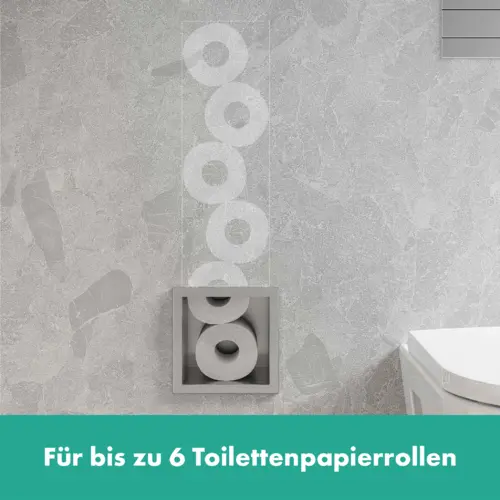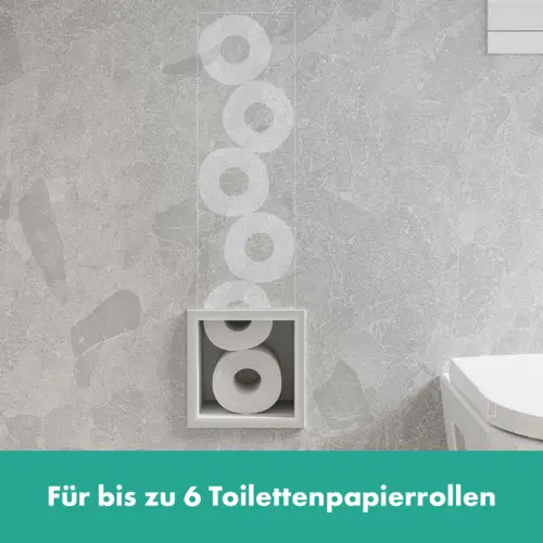 hansgrohe XtraStoris Original toilet roll holder, built-in, with storage container for 6 rolls, 140x140x682mm