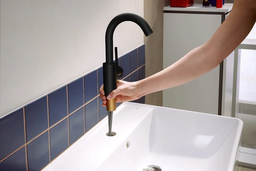 hansgrohe Zesis S single-lever basin mixer 210 CoolStart, with swivel spout and drain set