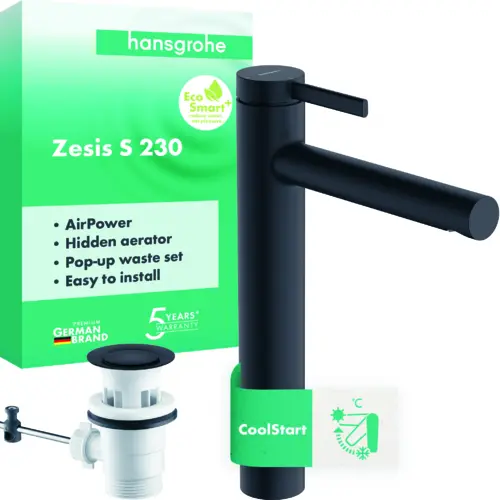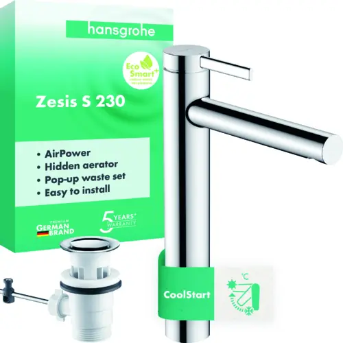 hansgrohe Zesis S single-lever basin mixer 230 CoolStart for countertop washbasins, with drain set