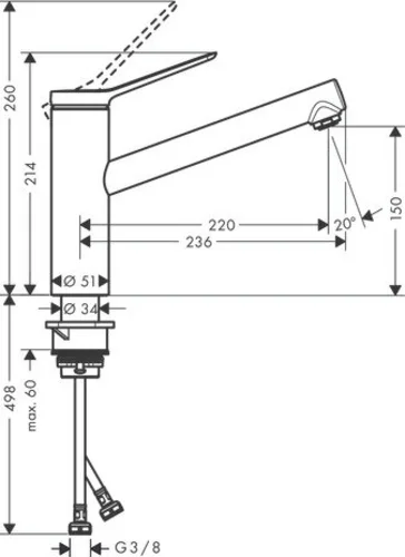hansgrohe Zesis Single lever kitchen faucet ComfortZone 150, 1 spray type, projection 220 mm
