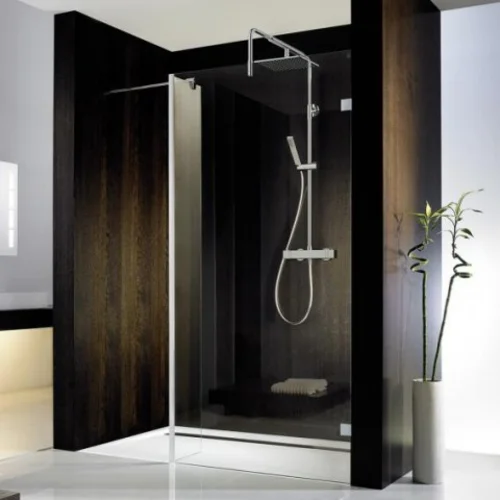 HSK Atelier Pur frameless Walk In glass element with side panel AP.71, up to 500(w) x 1000(c) x 2000mm, right stop