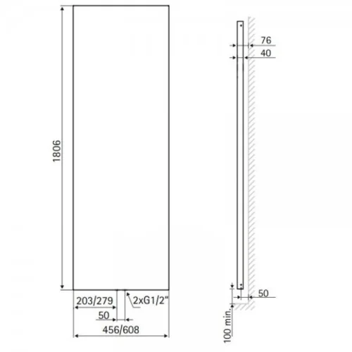 HSK bathroom radiator Atelier Line width: 60,8cm, height: 180,6 cm