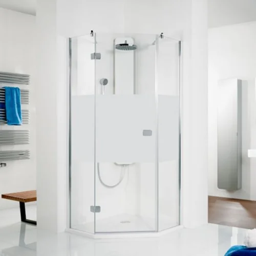 HSK Premium Softcube pentagonal shower, three-part, with 1 revolving door, size: 100 x 100 x 200 cm, left-hand stop