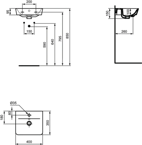 Ideal Standard Connect Air hand washbasin 400mm, 1 tap hole, with overflow