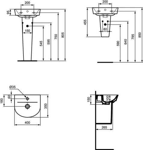 Ideal Standard Connect Air hand washbasin 400mm, 1 tap hole, with overflow