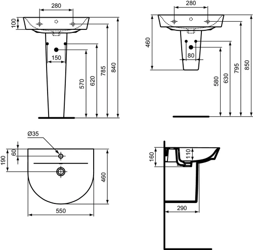 Ideal Standard Connect Air washbasin 550mm, 1 tap hole, with overflow